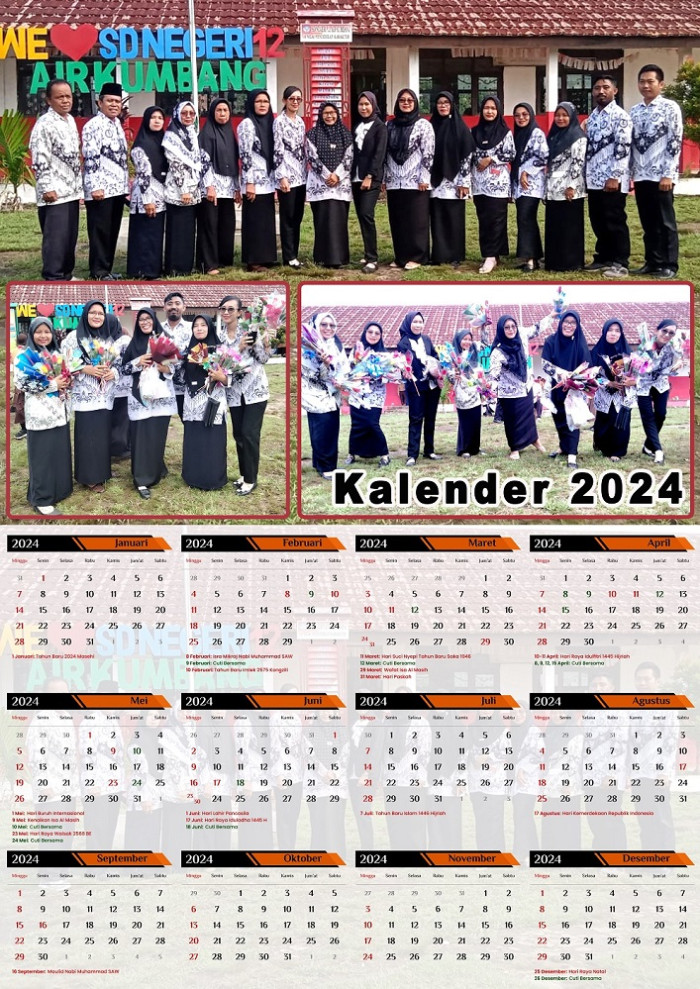 Kalender SDN 12 Air Kumbang tahun 2024, dalam rangka keluarga besar SDN 12 Air Kumbang menyambut tahun 2024.