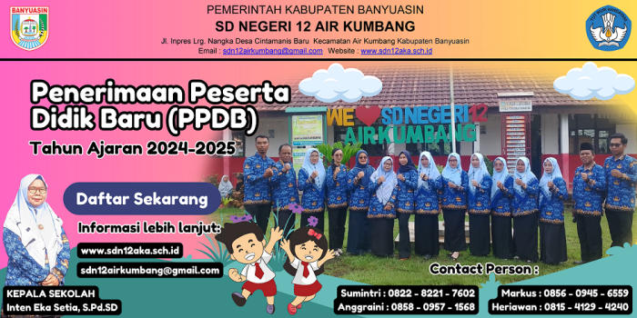 Penerimaan Peserta Didik Baru (PPDB) SDN 12 Air Kumbang Tahun Pelajaran 2024/2025